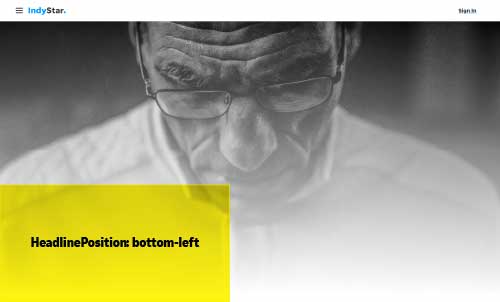 The headline and other topper elements can be animated for more dramatic, emotional impact. At present, there is only one fade-in sequence, called fade-1, but others can be added. is only one animation supported, and it can be viewed in the demos. The length of the animation, from page load to completion, can be configured with animationDuration, with a default of 4 seconds. The animation can be delayed with animationDelay, and defaults to zero, or no delay.