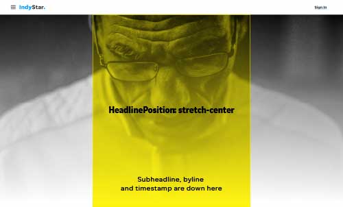 For a different kind of visual touch, you can configure the topper visuals and text scroll off of the page at different speeds. This effect only works where the headlines lie beneath the image or video, and as such, only works with the flat, gradient and notch layouts.