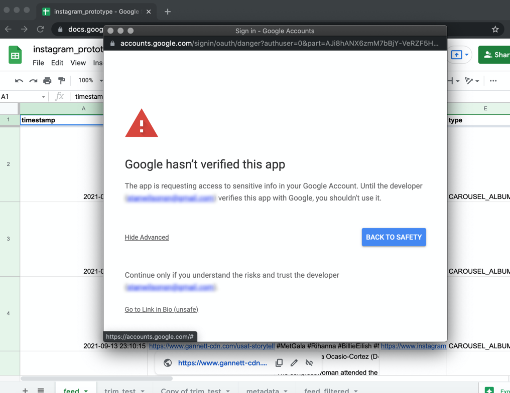 Once you have authorized the spreadsheet, you will need to select again the link you chose (i.e. Publish or Preview).